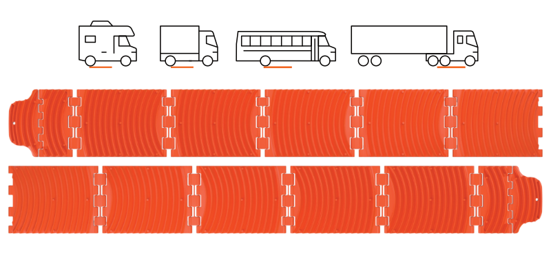 Each main panel of GoTreads is 1 foot long. An easy way to determine the approximate traction length is to count the panels. An XL GoTreads is 4 main panels thus we call it a 4-foot traction board. A standard GoTread is 3 main panels which equate to a 3-foot traction board. Custom lengths can be created by adding or removing panels to build whatever size you wish.