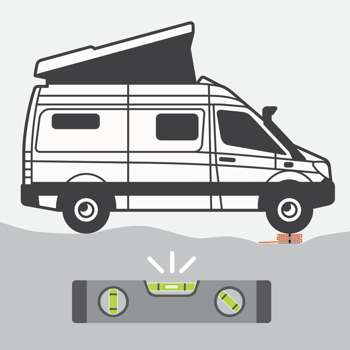 For leveling with 3-4 panels in height, we suggest securely fastening GoTreads to form a solid block. To simplify this process, the Stack Pack kit also includes a set of robust straps. These 42″ long straps transform GoTreads into a sturdy and stable leveling block.